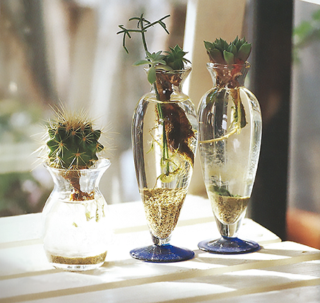 窓辺でキラキラかがやく水栽培、光と水のきらめきを楽しんで。底穴のいらないオリジナル栽培方法では、お気に入りのマグカップやおしゃれな空き瓶や空き缶に植え込んだり、楽しみ方が広がります。